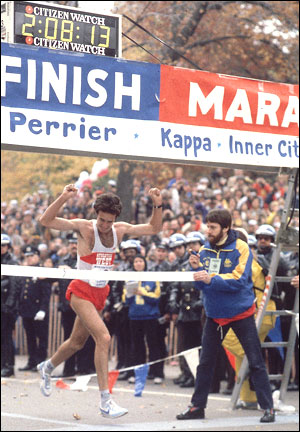 Alberto Salazar was born in Cuba but later migrated to the USA with his family. He won the New York City Marathon for three times (1980, 1981, 1982) and won the Boston Marathon in 1982. He suffered a heart attact last June 30, 2007.