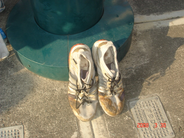 This is how a “tattered and worn-out” running shoes looks like which the owner exchanged with a better one after using it in the Mizuno 10K Run.