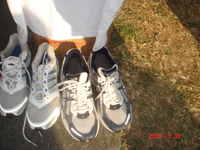 Three (3) of my old shoes were taken by three among the recipients. The remaining shoes (7 shoes) will be brought to the next road race next weekend for display/distribution to qualified recipients.