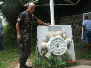 This is one of the engines of the Presidential Plane, Mt Pinatubo, a C-47 plane which serves as the marker where the engine’s plane was discovered by the rescuers. The pole on top of the cemented engine is the post of the white cross seen from the NHI Marker.