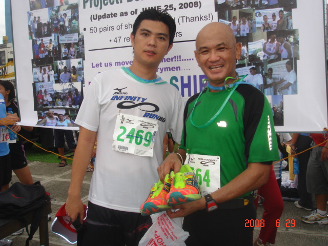 Let me acknowledge Vangee Mangulabnan who donated two (2) pairs of running shoes; one pair of running shoe from George Dolores; one (1) pair of running shoe from Vinson CS; two (2) shirts & two (2) athletic socks from Raymund Abenojar; and one (1) shirt from Miake Acedilla. Thanks for your support and May God bless you more!