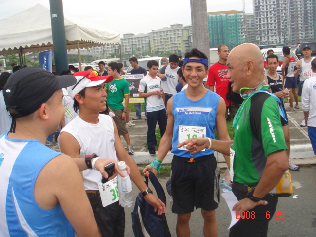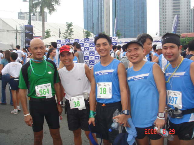 I was wearing an all-white running gear which was a combination of a Speedo shorts, Bench muscle shirt, The North Face Flight Series Cap, and ASICS Gel-Kayano 13 running shoe, which was almost the same as my running gear when I posted my first running picture in this blog. This was a part of the pictures taken during the 1st City of Angels Half-Marathon in Los Angeles last December 2006.