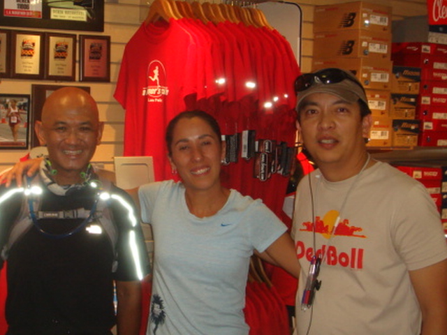 A pose with the owner of the store, Joe Matias (on the right) with his store staff, Daniela (at the middle) who is one of the top female runners in Los Angeles.