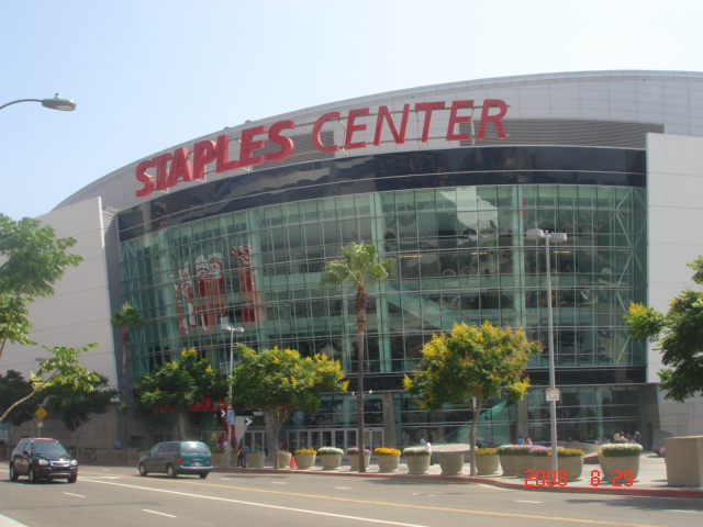 At The Staples Center–Home of the LA Lakers (Note: Look at the Big Pots infront of the Staple Center)