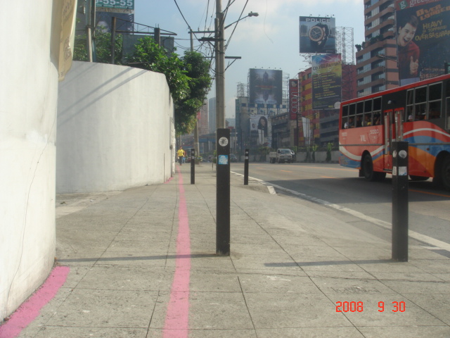 Lastly, I don’t know the significance of this “pink” line painted on the sidewalk at EDSA. Moreso, with the black steel posts on the sidewalk. If MMDA would like to discourage drivers from parking their vehicles along the sidewalk, then these posts are unnecessary. Definitely, the sidewalks along EDSA are not parking areas for vehicles and I know this regulation since the ’70s.