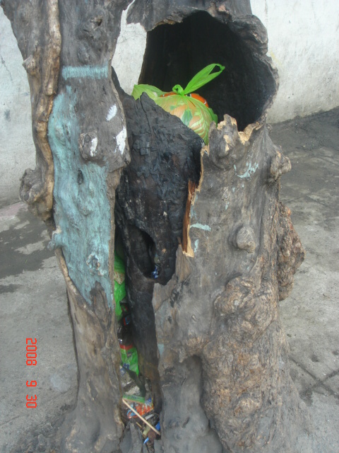 A rotten trunk of a tree along the sidewalk of EDSA being used as a trash bin!