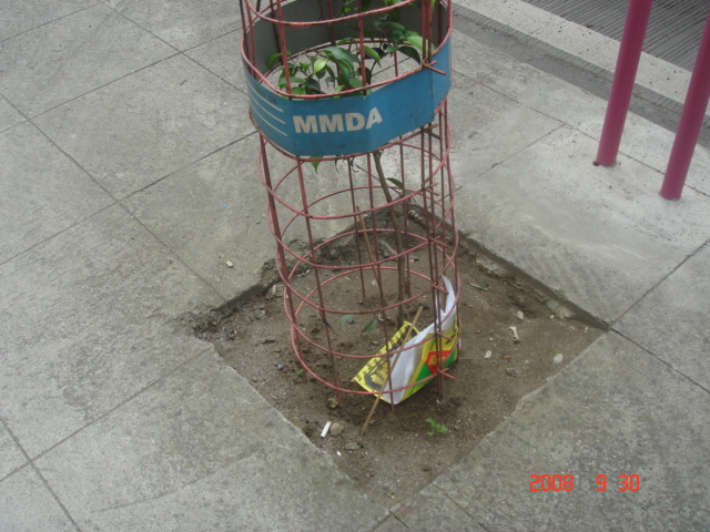 The area/location where the newly-planted “ficus” plants at EDSA are being used a trash bins!
