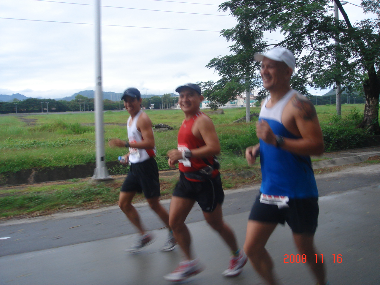 My GF 305 registered a time of 2:09:00 with a distance of 25.14 kms. My average pace was 5:07 mims/km. The course was really, really tough and challenging but it was balanced with a cloudy sky with colder temperature; lots of (bottled) water in all the water stations which were positioned every 2.5 kms; and most of all, with the clean/unpolluted and fresh air of Clark Air Base.