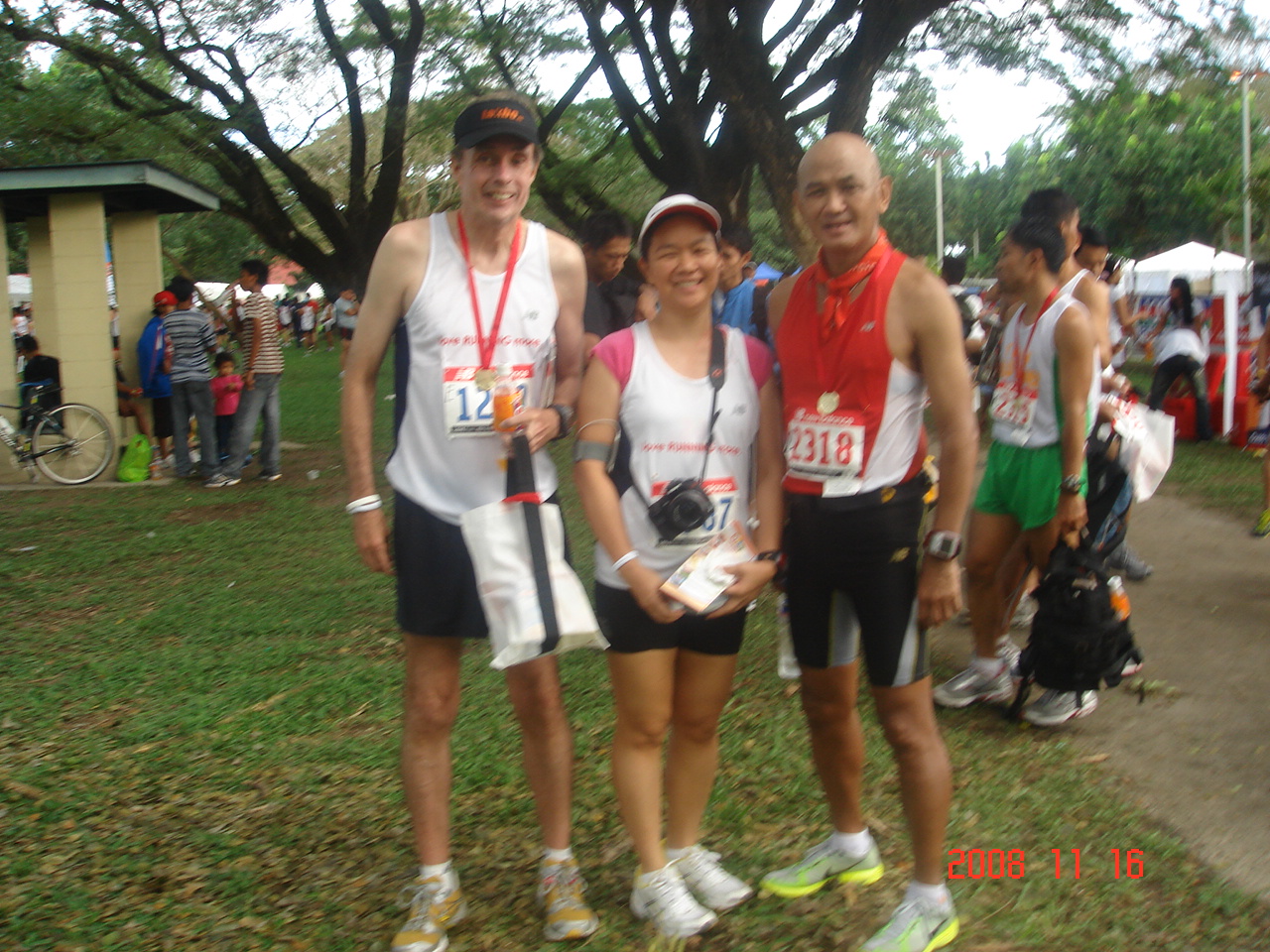 After a 7-8 hours of sleep on the night of Saturday, I woke up at 4:00 AM and did the “usual” preparations for the race. At 4:45 AM, I was already near the Assembly Area and did my warm-up and stretching. There was some slight shower of rain before the start of the race and I knew this was a good sign that the race will have a nice weather for all the runners. I was able to get my RFID “chip” from the Registration Area and met Wayne aka SFrunner; Philip aka Foreign Runner; Jay aka Prometheus Running; members of Happy Feet Runners and other “runner-bloggers” and “commentors” to this blog.