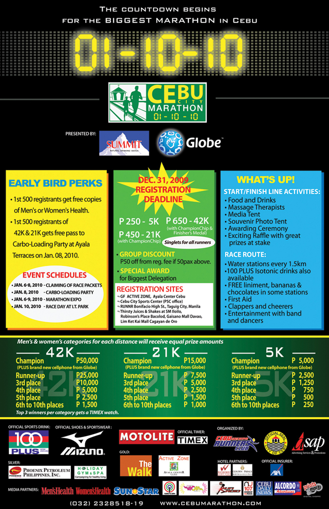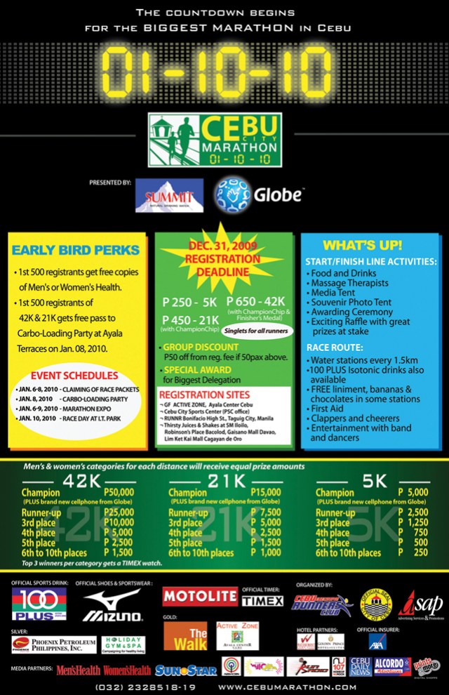 2. The 32K distance is a perfect LSD run for Cebu Marathon, Condura Marathon & 2010 BDM 102. There is no cut-off time for this run!