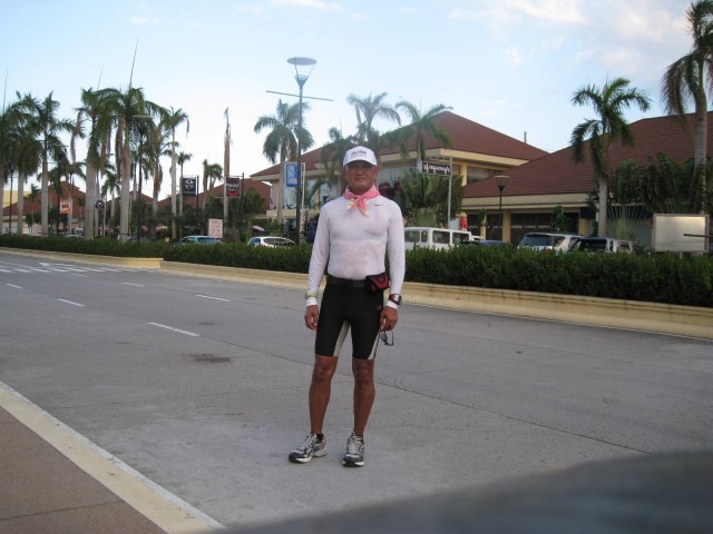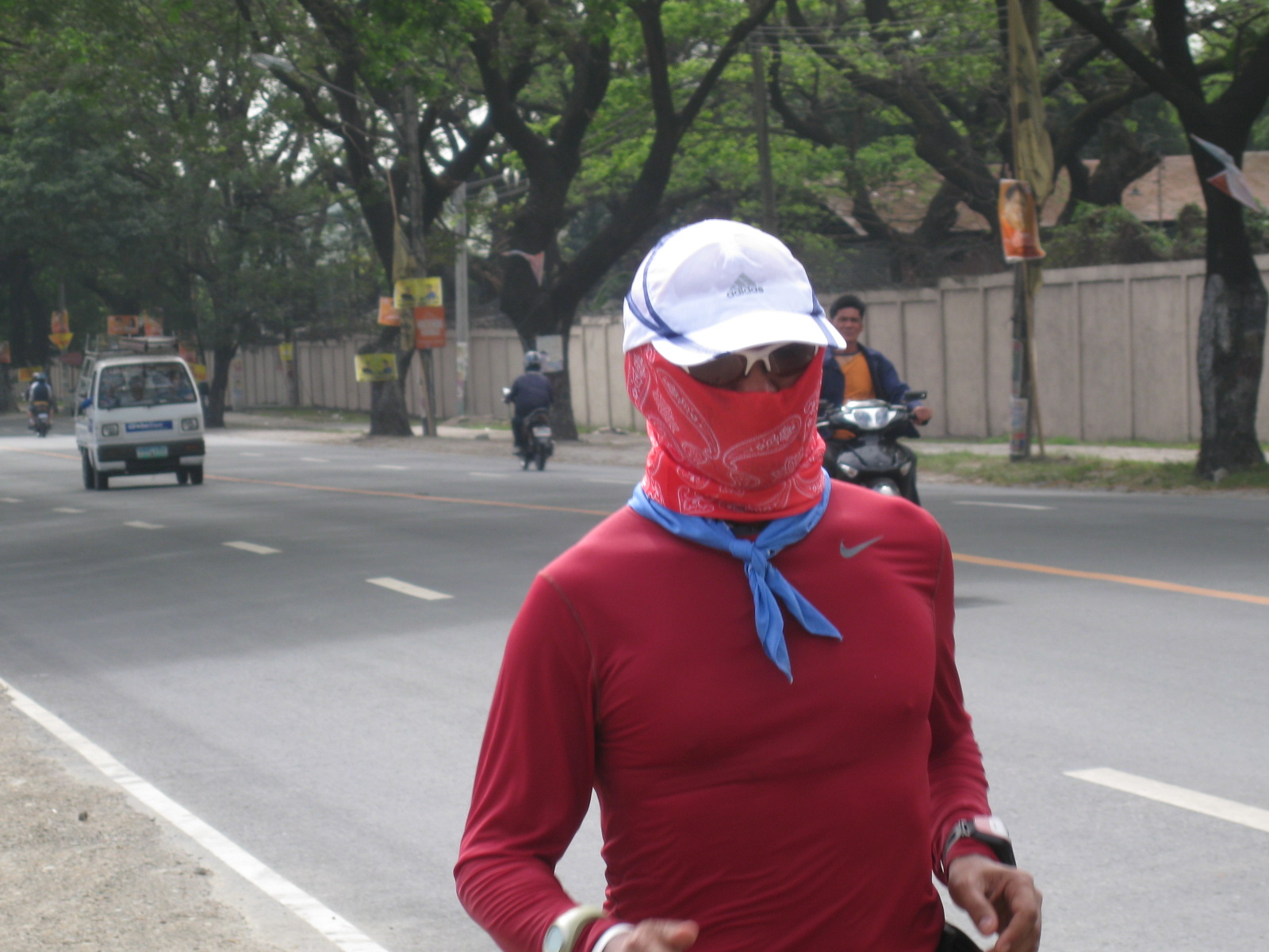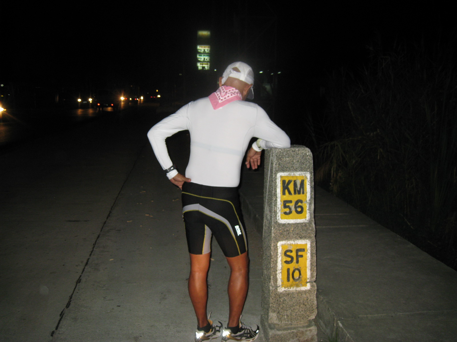 2. After 3 1/2 hours of rest, I changed to a new set of running apparel—NIKE White Compression Long-Sleeved Shirt; New Balance Compression Shorts; 3 Bandanas (one for my head sweat stopper & 2 were tied on my neck); PUMA Black Socks; white cap; Ray-Ban Sports Sunglass; ASICS Gel-Kayano 14 and my Nathan Hydration Belt.