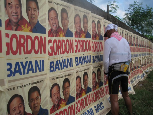 6. It is funny that I could see the campaign activities of the national candidates are on full swing! I think I was able to count a half dozen of brand-new pick-ups and vans painted with the campaign color & slogan of Senator Lito Lapid with blaring “jingle” and message for the people to vote and re-elect the Senator. I am sure more of these brand-new vehicles are already on their way to the Visayas and Mindanao as part of the campaign caravan for the Senator. I wonder why Senator Loren Legarda has to use the acacia trees as her campaign display instrument by using nails/staples to keep her posters from being removed. If only those acacia trees are humans, I can just imagine the pain they feel with those nails/staples used to display her campaign posters. I thought the good Lady Senator’s advocacy is to preserve the environment? Do you still remember those road signs with the poem “Trees” by Joyce Kilmer sponsored by the Lady Senator?