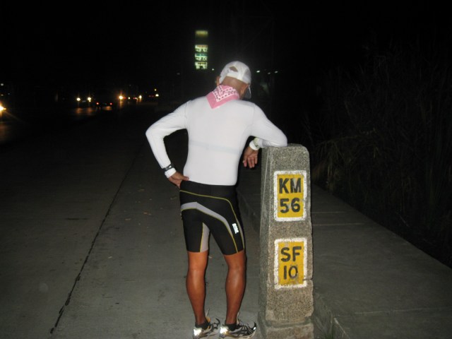 8. Rey and I ran together on single file. On the first 10 kilometers, I was leading the pace but on the next 10 kilometers, Rey was already the one who was trying to pull me along the road as he would lead me for about 5-10 meters. We had occassional “pit stops” where we replenish our water for our hydration; drink sports drinks; and ate Fita/SkyFlakes with Cloud 9 Chocolate. Each Kilometer Post along the road was a sight of relief as the number of Kilometers to my destination slowly became lesser until it bacame single digit.