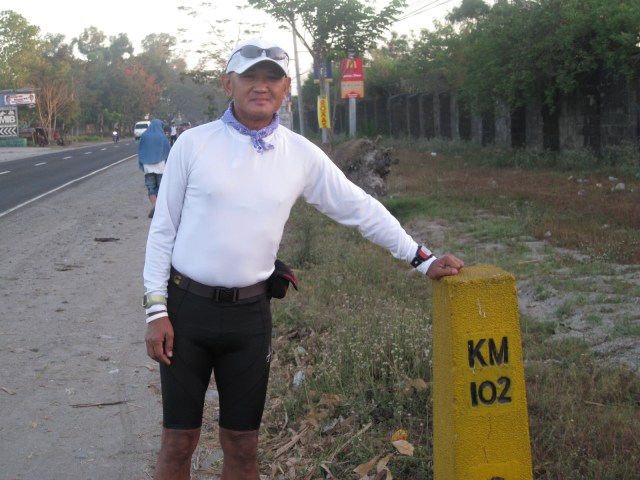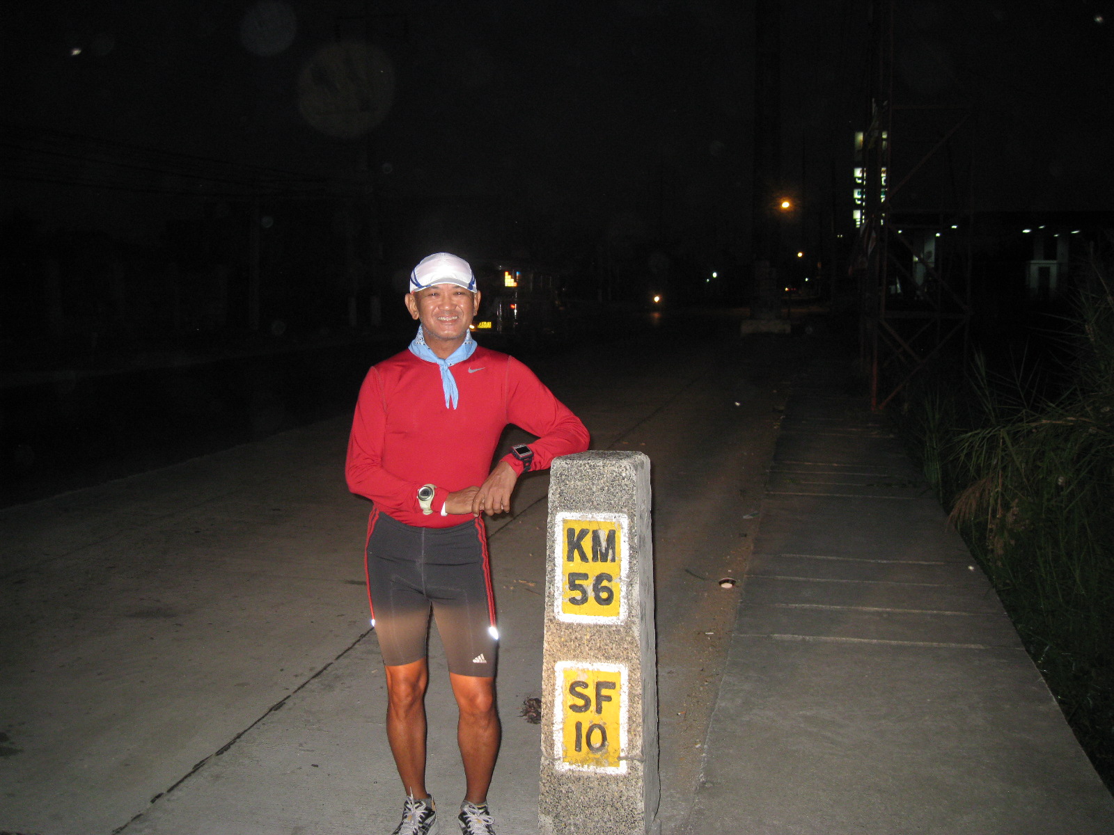 1. From the last Kilometer Post (Km #56) where I stopped yesterday, I rode in my support vehicle and proceeded to San Fernando City to eat and rest overnight (RON) which is another 10 kilometers away. At 5:30 AM this morning, I was already on my way back to Apalit, Pampanga to start on the same Km Post where I stopped last night. I started my run at 6:13 AM from Km Post #56.