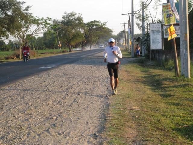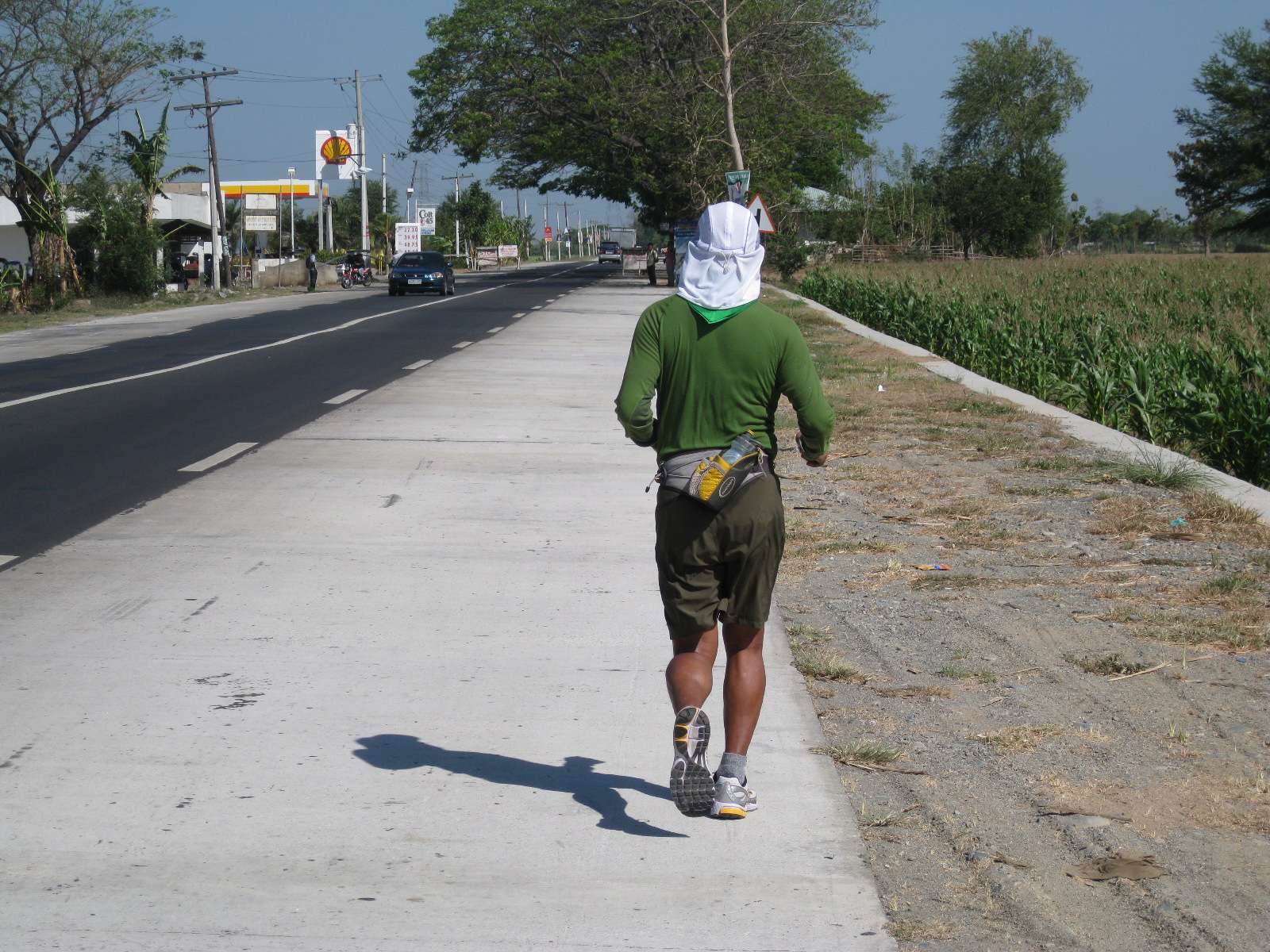 1. It was almost 5:00 PM when I started my afternoon run from Isdaan Restaurant in Gerona, Tarlac. Due to the narrow asphalted National Highway, I had no choice but to run along the dirt road on the sidewalk. Both sides of the road is filled with small stones/gravel & sand. Whenever I stepped on a gravel, my feet would absorb some pain brought about by the uneven ground. It’s really hard to be running on a gravel & sand.