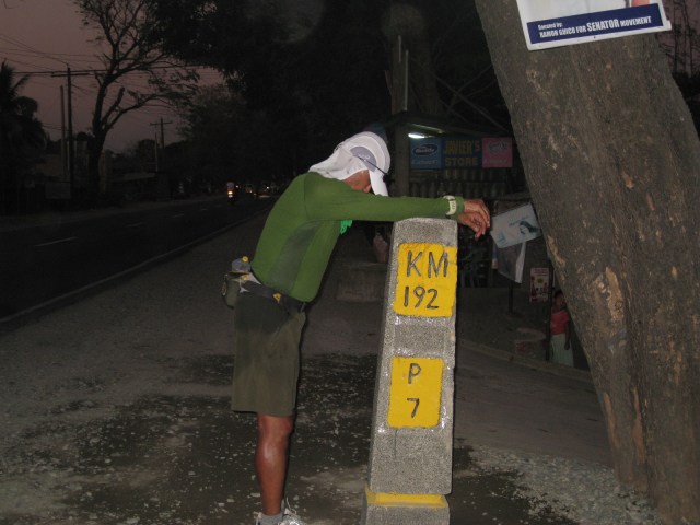 2. For me to finish this “leg”, I need to have a longer time to sleep the night before the 5th day, wake up earlier than the previous days, and start the run before sunrise. The 5th leg is planned to be a continous run/walk from Kilometer Post #192 to Kilometer Post #250. So, I woke up at 4:00 AM; did the “drill” as if I am going to join a road race; and packed my things.