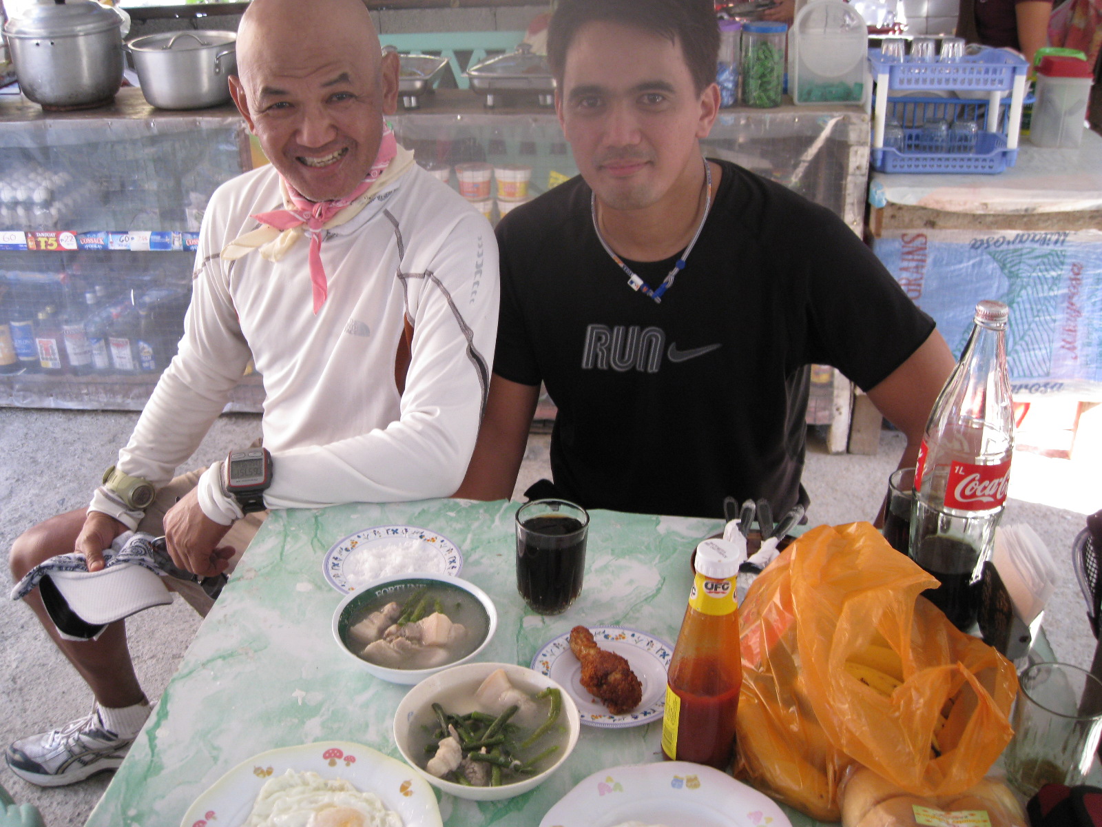 4. At Km 21, Rey Jimenez of Dagupan City met me along the road and we started to run together. Rey finally believed about my description on the sidewalks of our National Highway as he had seen stones and gravel & sand. After running for two kilometers, we stopped for our breakfast and rest. I ate “tapsilog” with their native chocolate/cocoa hot drink. I really liked the hot native chocolate drink! We stayed at Rivervue Restaurant for about 45 minutes and I think we were the first customer for the day.