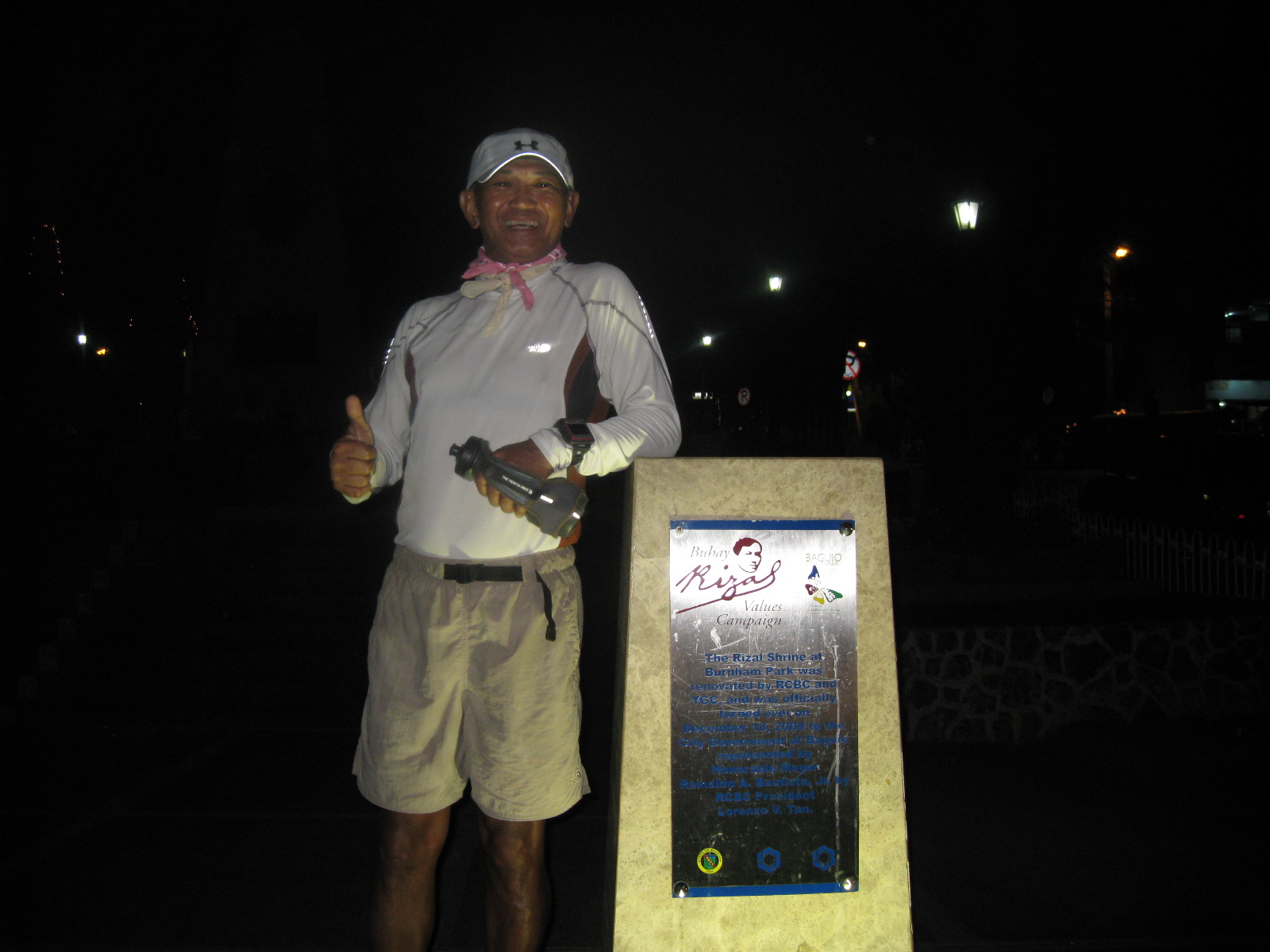 12. I finally reached the Rizal Park infront of the City Hall of Baguio at 6:15 PM as I walked entirely along Burnham Park with heavy traffic of vehicles and people coming out and going to the Park and to those who are audience to a political rally at the Burnham Athletic Ground. Practically, I was on the road for 12 1/2 hours for my last day. I ran the 58-kilometer distance for the day with a running/walking time of 9:15 hours. Finally, I reached my destination. I did it. I was able to prove to myself how far I can push my body’s capability beyond its limits where I could run an ultramarathon distance almost everyday for 5 days. I was able to prove it also that I can inform my readers on a “near real-time” with pictorials through the Internet with what is going on with me in my “adventure run”.