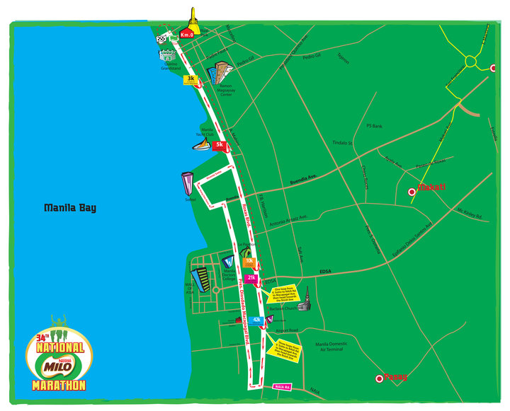 I have nothing to complain about the 3 loops every runner for the 42K race would undertake as long as it will result to an accurate distance for the 42.195K race. The relatively flat terrain of the course where the Flyovers will be considered as “speed bumps” (on flat streets) will be an advantage for the runners. For those who will be supported with their own family/friends’ Aid Stations, they could select a place where they could wait for their runner to pass without having the problem of following or “leap-frogging” with their runner. This loop system will also a nice way to keep an “eye contact” or good sighting to your “target” for this race due to the straight direction of the key roads of the route. I’ll be glad that runners within my age range will also use me as their “target”! But for the younger runners, I’ll be happy to see them way in front of me because they will be qualifying for a faster time!