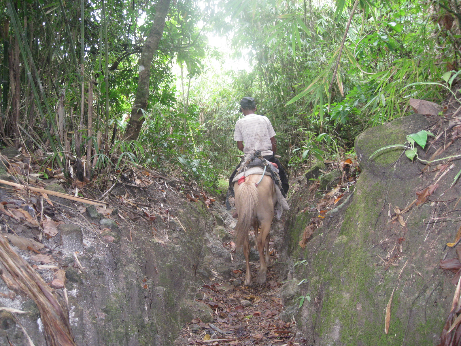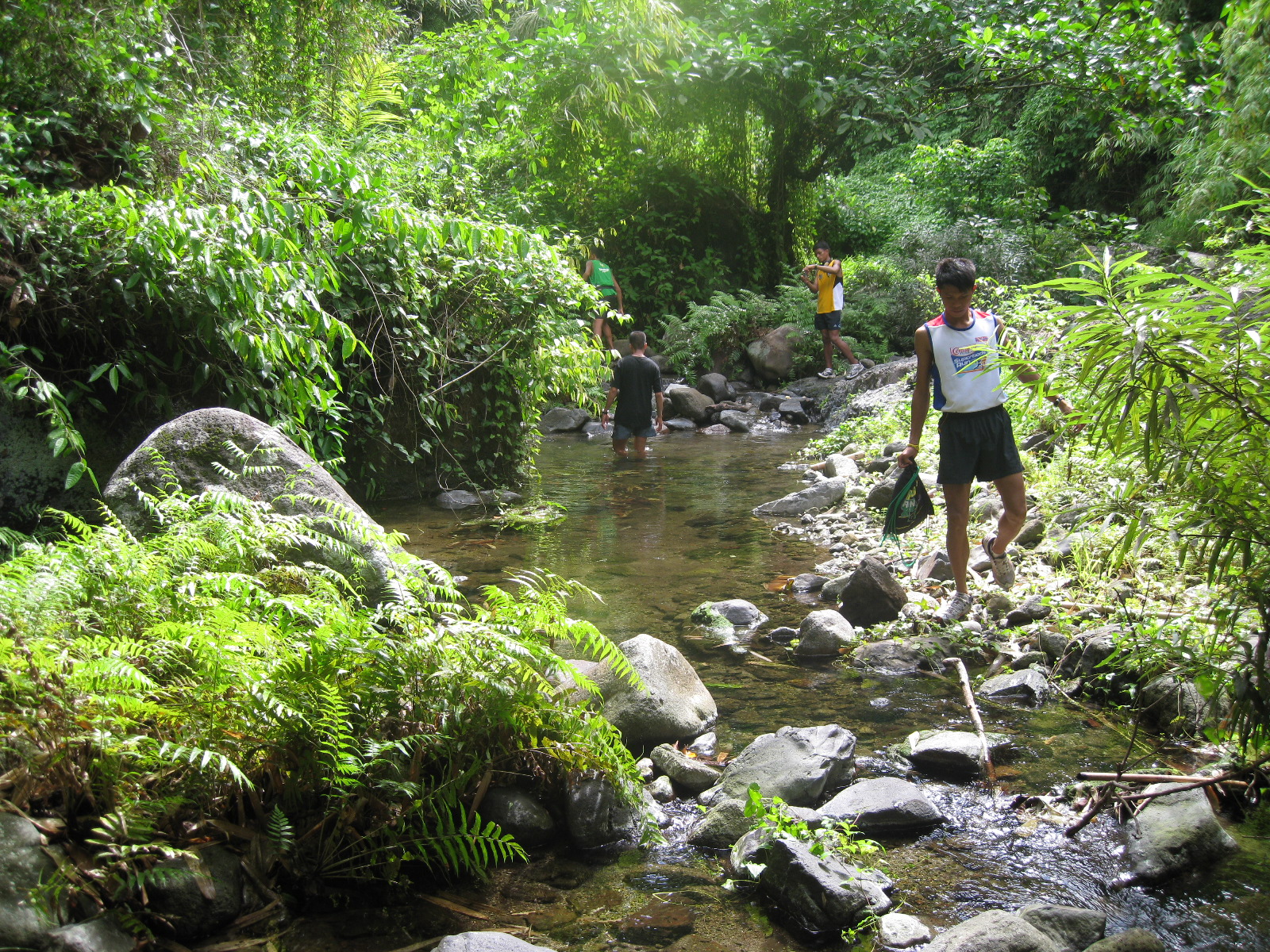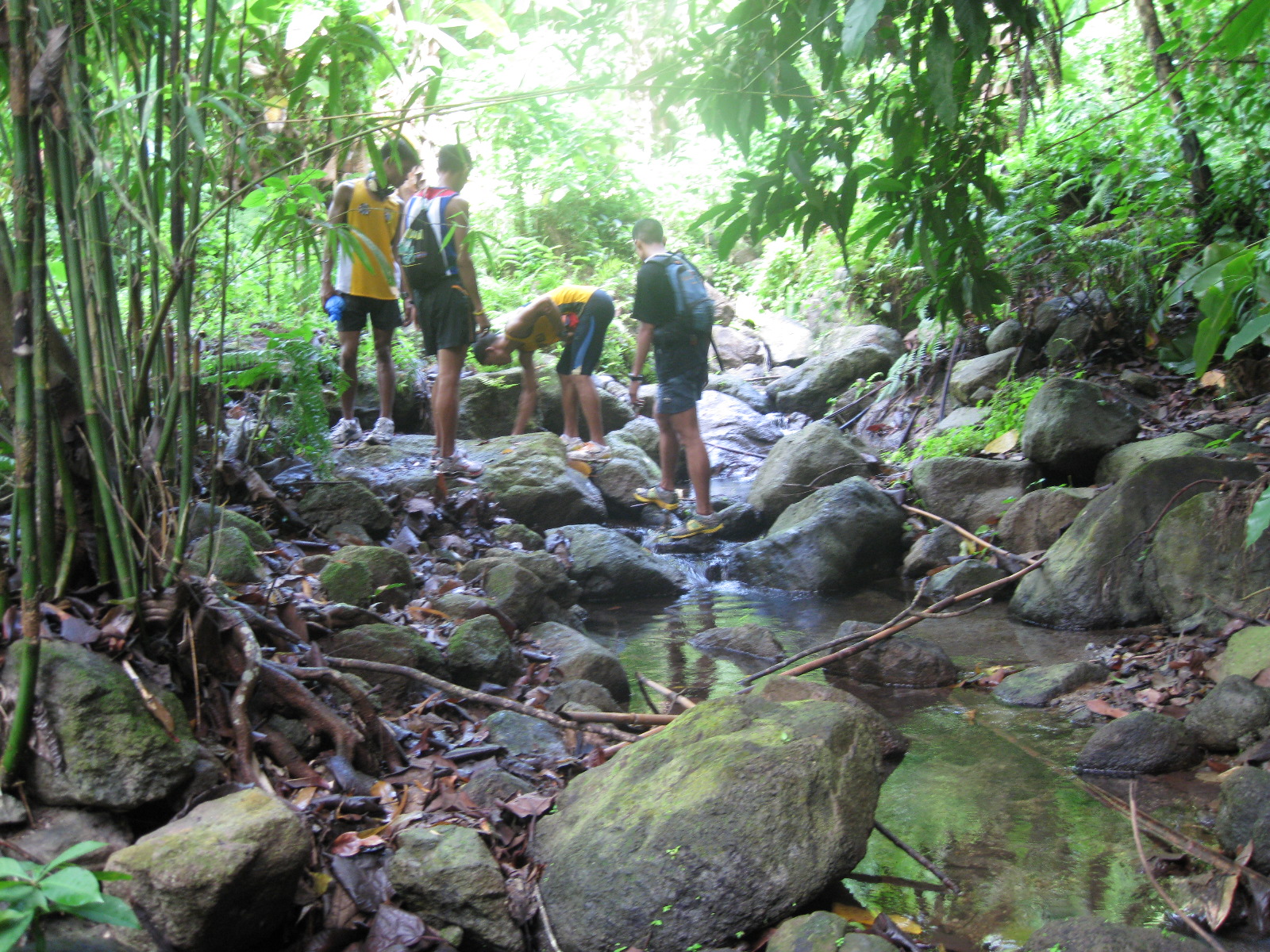 We finally reached our first turn-around point where we cleaned the stream/spring water last week. We briefly stopped to drink some water using our palm and crossed the spring. The picture above is about 500 meters after we passed the turn-around point and the trail started to be steeper until we could not see any trace of the trail. We crossed the same spring for two times before we could continue again running along the trail.