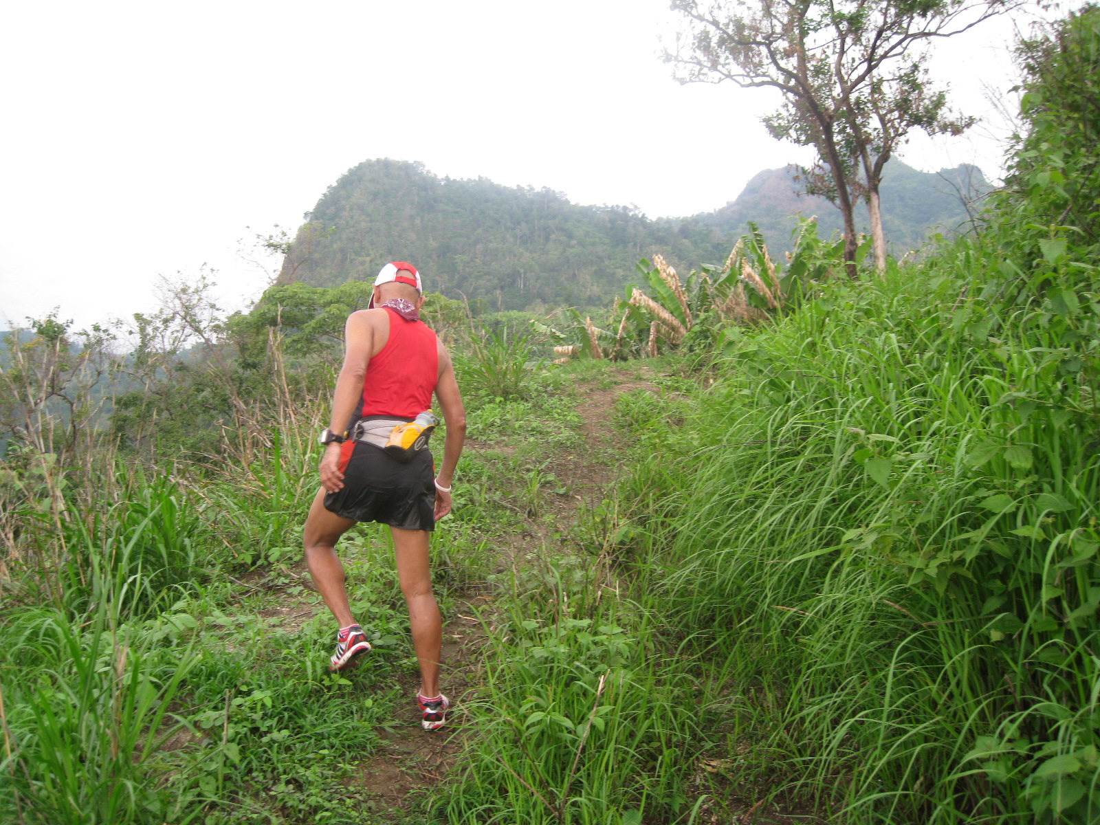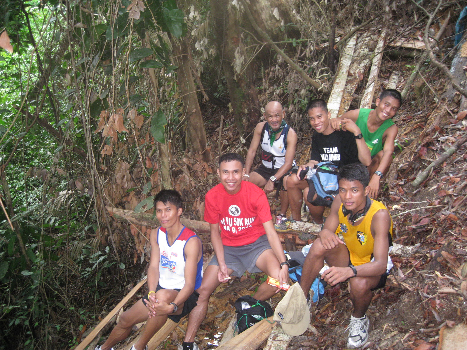 At Km 6.2, Django was sleeping in his nipa hut while his wife was on the side of the trail smoking her tobacco. We greeted the lady as we passed by their hut. No sardines this time! Elmer went ahead of us as we reached the Km. 3 but he was too fast that we did not see him anymore. As we were about to reach Km 7, we were only three and there are times that I led the group (three runners). However, most of the time Charlie (in black Team BR shirt) was the one infront, me at the middle, and Jack guarding my back.