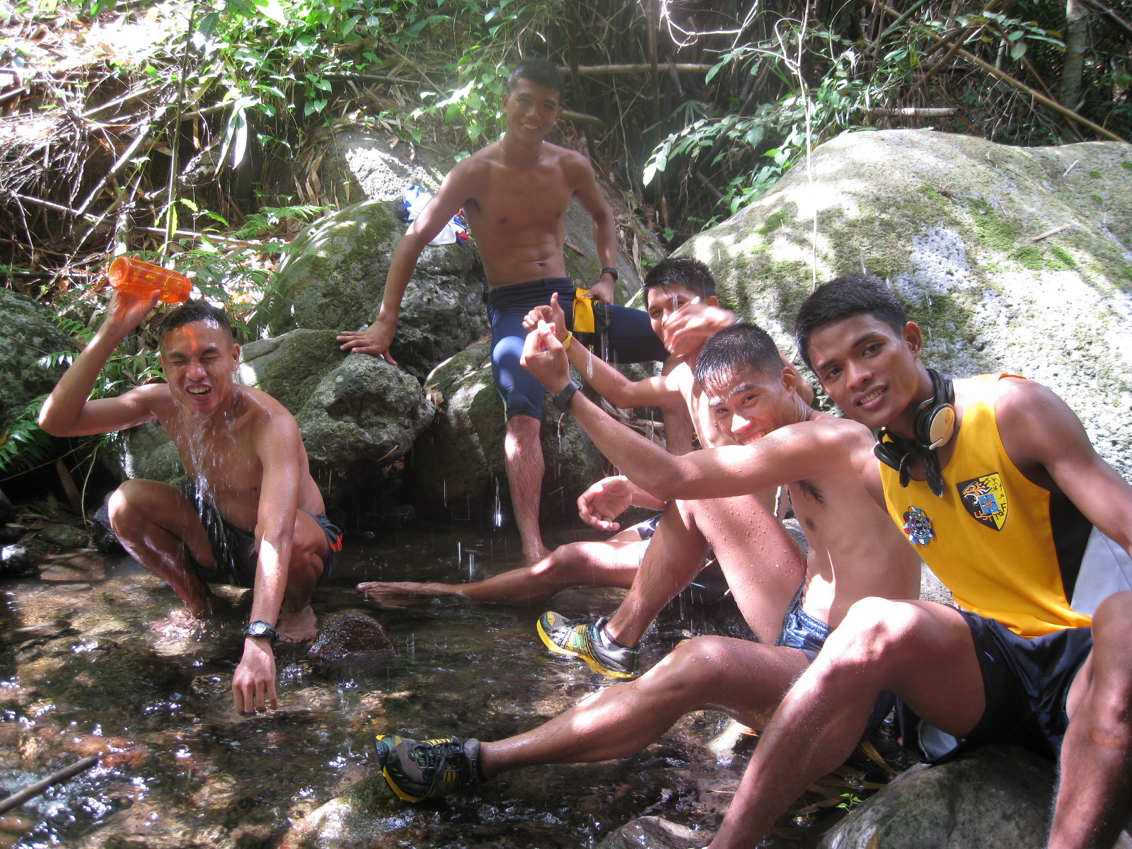 When we reached the part of the spring that we cleaned, I told my companions that we’ll have a brief shower and washing of shoes and shorts. It could be that my legs were already tired and stiff on our way back that I experienced sliding on the soft trail with my butt pounding on the ground! I slipped for two times! My shorts were full of mud! These things happened when I was brisk walking on the downhill part of the trail. However, if I jog or run through such soft parts of the downhill trail, my foot/shoes would land on the ground without any sliding. With such observation, I maintained running or jogging throughout our trail run and I did not experience any sliding at all.