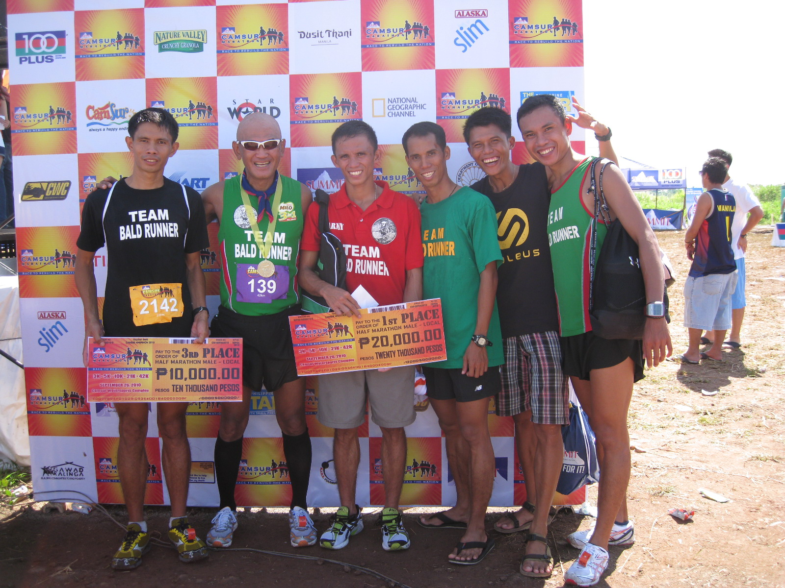 “My cause is just to promote the sport and raise funds for my athletes in Team Bald Runner,” he says. “I have 15 elite athletes I’ve been training for events. I support their registration fees, some subsistence, some out of town trips. They have been consistent in the top 3, top 5 in road races here. I brought two of them to South Korea last month for a 100-kilometer race. One of them placed sixth in the Jeju International 100K Run, setting a national record of 9 hours and six minutes. This is a good start.”