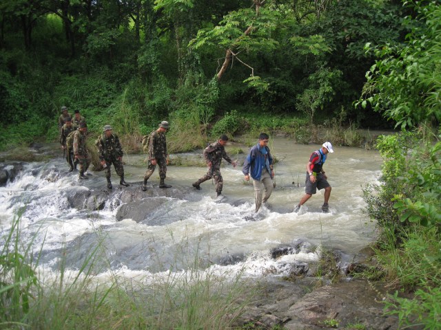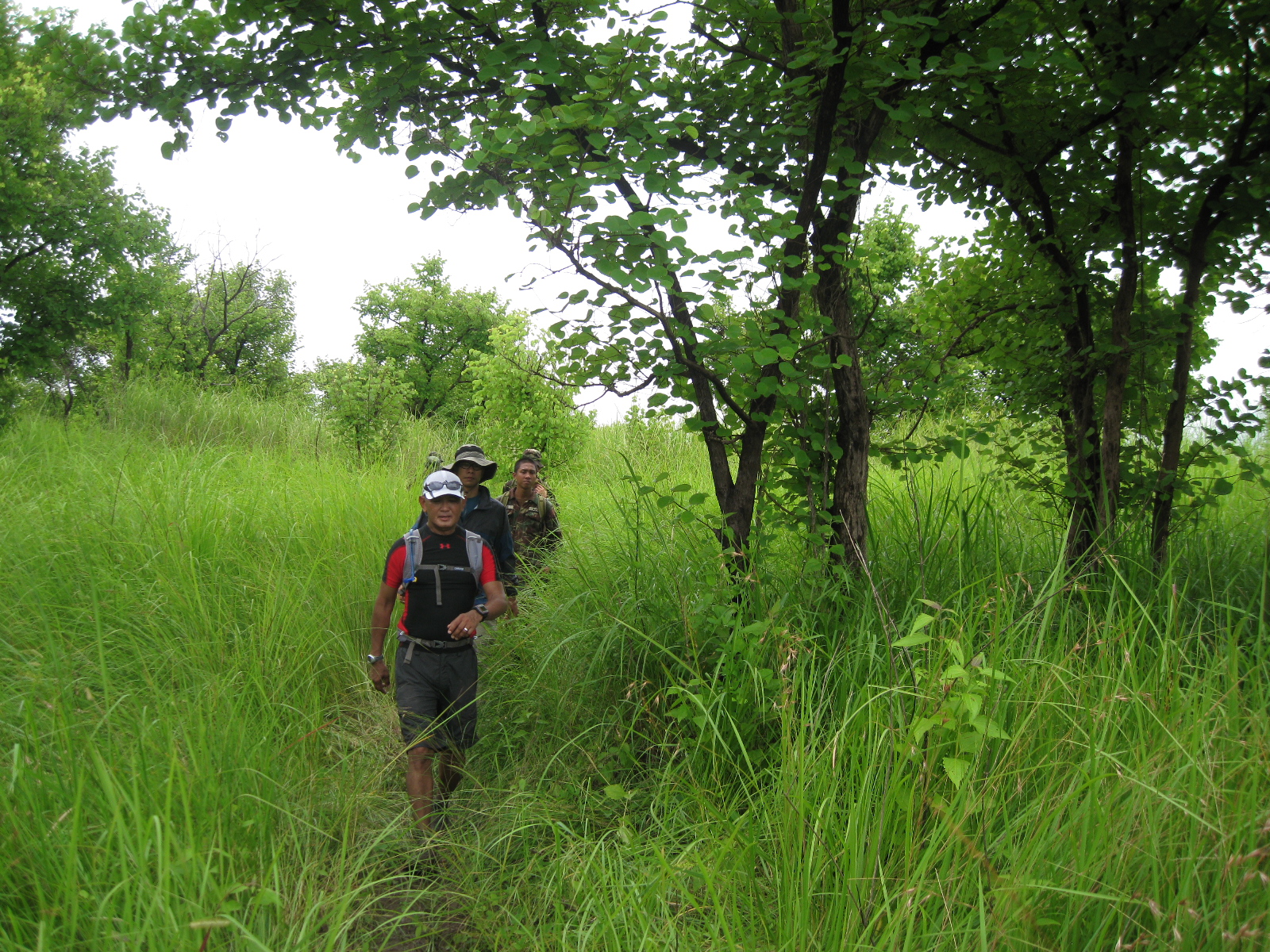 Practically, we left on the northern side of the camp and run through the trails on the eastern side of the camp and then re-entered the camp from the south direction. The route traverses through rolling hills and mountains with maximum elevation of 375 meters with lots of stream crossings through spillways and river crossings. What made the run very relaxing was the scenery, clean air, overcast sky, rain & showers on mid-day, and some conversations with the residents along the route.