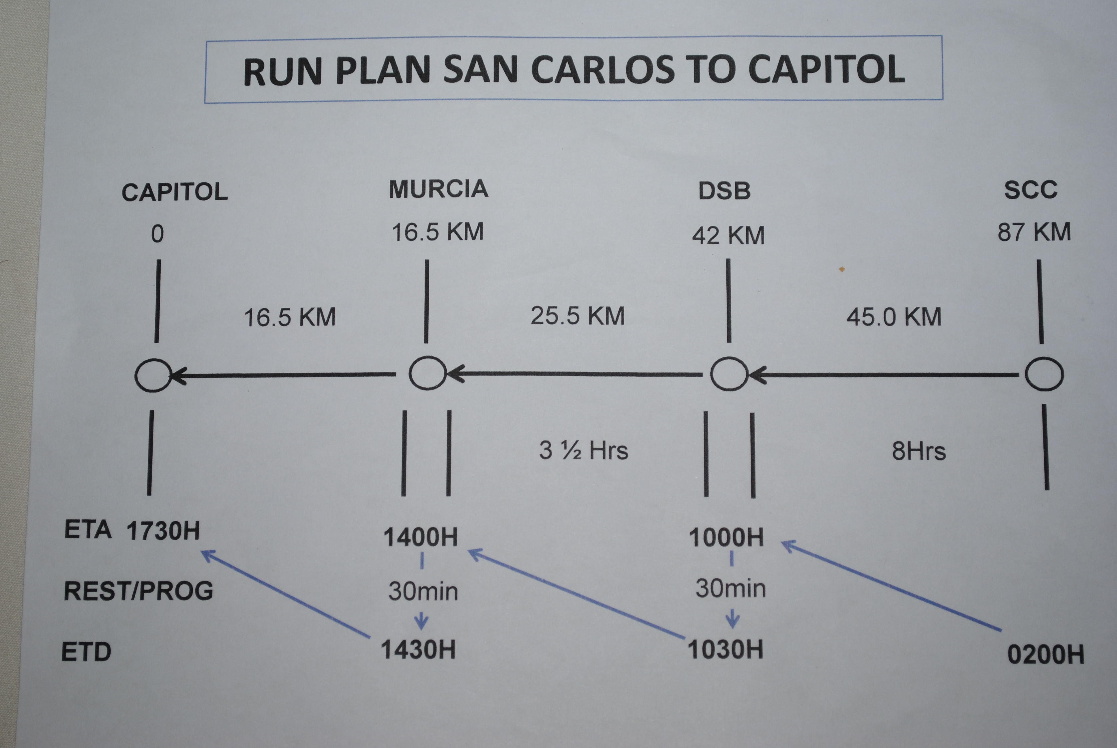 Since my group will be running the farthest distance, the plan was to proceed to San Carlos City a day before D-Day and be able to start the run at exactly 2:00 AM on D-Day.