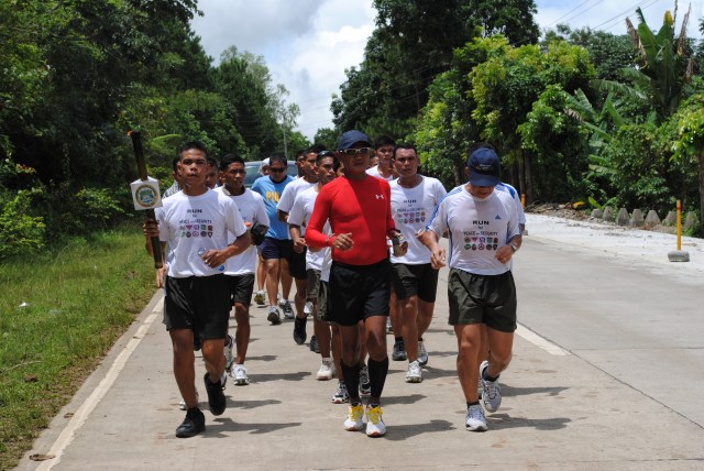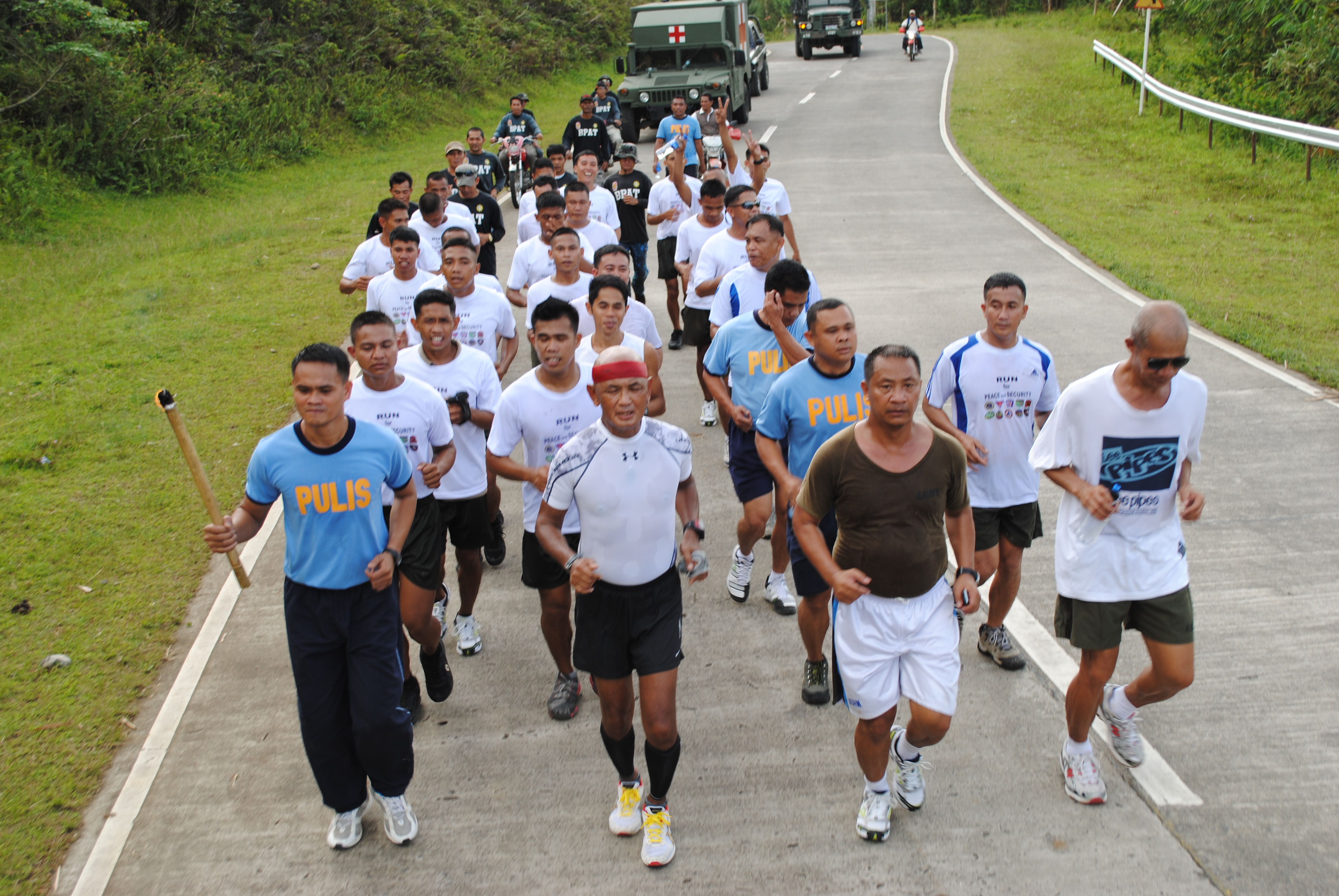 As the days passed and the event getting nearer, I received specific and detailed planning instructions about my run in Negros. I have to finish the event in about 16 hours as depicted in a graph prepared by Colonels Lactao and Aying. It appears that this is a simultaneous run of THREE GROUPS; one group is coming from the North of Negros; one group is coming from the South; and one group (my group) is coming from the East and our group has the longest distance to run. The rest of the groups had to run 12-16 kilometers from a certain point and my group has the longest distance to run! As planned, all the groups would converge to the Pond/Capitol Grounds at exactly the same time (6:00 PM on D-Day) to offer a Torch of Peace to the Provincial Governor & Leaders of Peace Groups in the Area from each of the running groups. These 3 torches carried by each group will be made to light a Big Torch as a Symbol of Peace and Unity for the Island of Negros.
