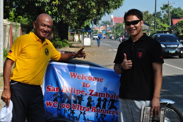 In San Felipe, Zambales, John Maigue positioned one tricycle full of water, cola drinks and food near the Cemetery of the Municipality. The Aid Station was a welcome relief to all the runners as they were fighting with the hot condition of the road. He also became the instant reporter on the exact time that each runner had passed his location.