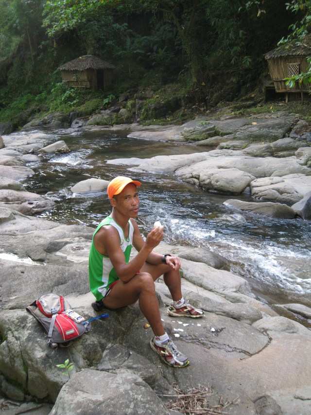 A day after coming from Baguio City, I brought him to Porac, Pampanga to conduct a recon run on the 22-Kilometer mountainous stretch of the Clark-Miyamit 50-Mile Trail Run. He was paced by Danin, one of my runners whom I brought to the place in one of my runs, and I gave them instruction of what to do during the run. I would bring them to where runners would usually start at Barangay Sapang Uwak and for them to run all the way to the Miyamit Falls. I gave instruction for them to take some pictures with the Falls as the background and have their “pit stop” thereat and immediately go back to where they started.