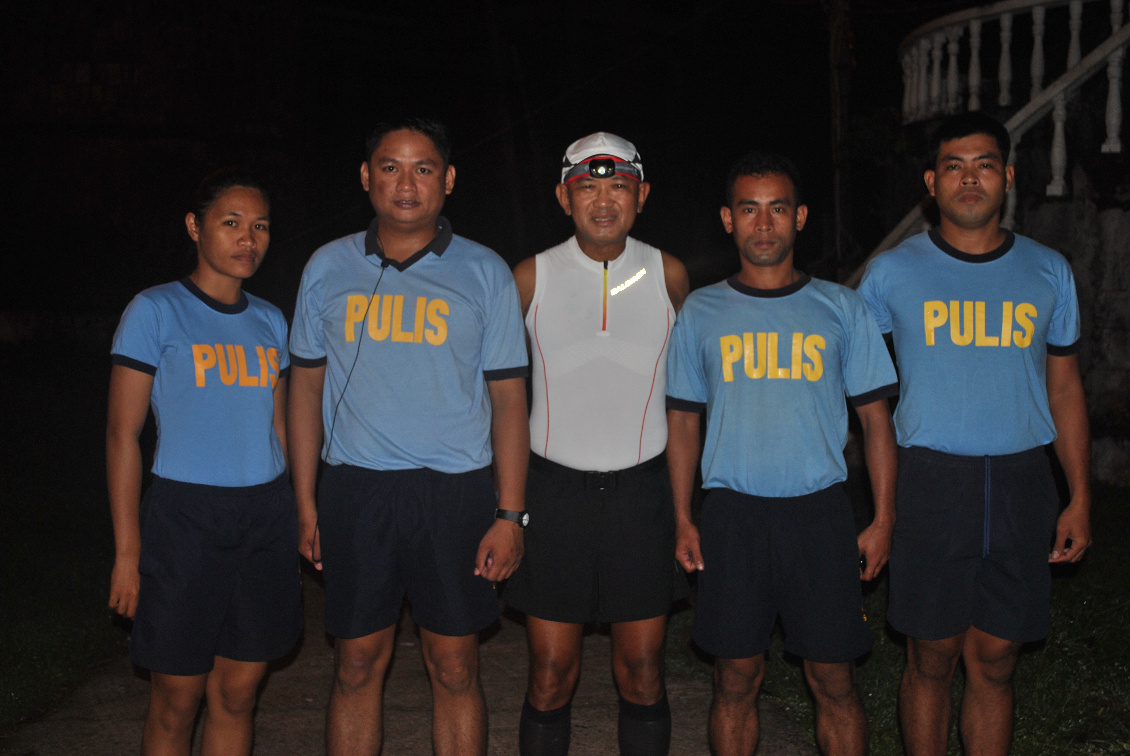 I was fetched by the driver of the multi-cab at 3:30 AM and was brought to the starting area which is 2+ kilometers away. I was surprised to see P/Inspector Dumaguing with four (4) other Police Personnel in their athletic uniform telling me that they will join me in my run! Of course, they will do some relay as they wanted me to run with at least one of them as my guide/pacer or safety runner. I really appreciate their gesture to accompany me during the course of my running.