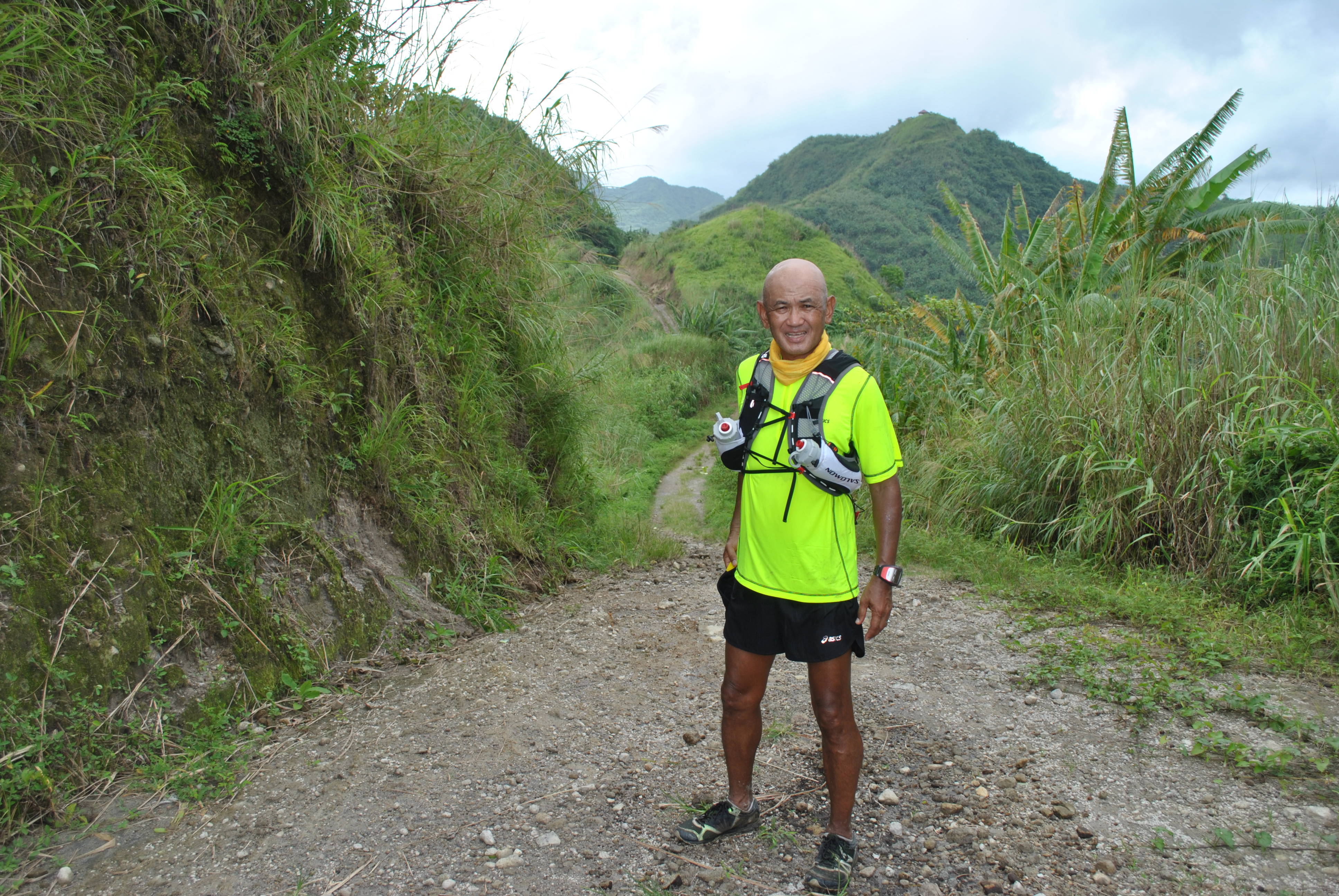 4. Running Kit & Apparel—-My Patagonia Shorts kept my iPhone on its back pocket with 6 GU Gels (3 pieces on each side pocket). My Patagonia shirt was very light even if it was damp/wet the whole race. The Ultimate Direction AK Vest which I use in my training kept my 2 bottles for hydration and food at the back pack; my tiny Nikon Camera on my right shoulder pocket; and two GU Gels on my left shoulder pockets which I used also to keep my trash during the run. I was wearing my favorite Giro Cycling Gloves which was very useful during the run (I guess, I need to post a separate story for this!). Calf sleeves were used to protect my legs from the sharp leaves of wild grasses along the trails. I also used Gaiters to protect debris and other dirt from entering my shoes. I’ve chosen my ASICS Gel-Mt Fuji Racer Trail Shoes instead of Inov-8 Mudroc 290 due to its lightness and easy drainage of water entering the shoes and it gave me the much needed confidence to paddle through water-soaked, muddy, and slippery trails. My Under Armour running cap and Buff which were damp and wet were also useful in maintaining a lower body temperature on my head and nape.