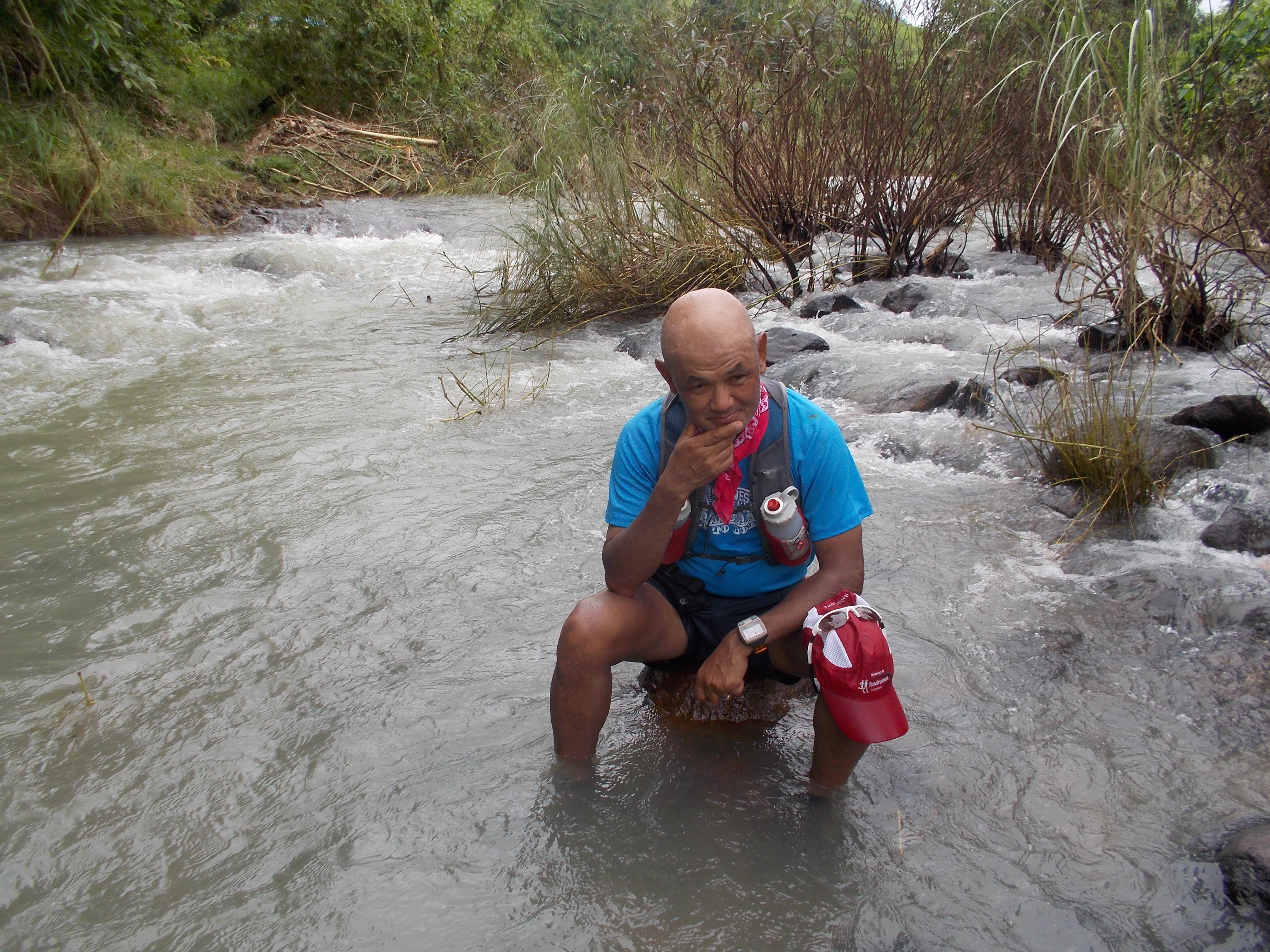 3. Nutrition & Hydration—In my training, I have experimented on my nutrition and hydration, most specially on my weekend long runs. Such experimentation was applied during the race. For the race, I ate a simple breakfast of steamed rice + 2 pieces of hotdog + hot coffee, 45 minutes before start time. Some runners who greeted me at the Starting Line saw me eating this stuff. I took in some water with the food. Twenty (20) minutes before start time, I took in my first Espresso Love GU Gel. From the start up to the finish, I took this GU Gel every 40-45 minutes and hydrating with Perpetuem Mix and Water every 20 minutes in an alternate manner. At the turn-around point, I started eating my Hopia as my solid food. On my way from Miyamit Falls to the Finish Line, I was able to eat 2 pieces of hard-boiled eggs with salt. I have also six pieces of Butterscotch from Biscocho Haus of Iloilo City in my pack as my reserve food. At the end of the race, I was able to consume eight (8) GU Gels; 4 pieces of Hopia; 2 pieces of hard-boiled eggs; 40 oz. of Perpetuem Mix; and 40 oz of Water. This nutrition & hydration strategy was strictly followed to keep me from “bonking” and reacting to it and as a result, I was being proactive to the needs of my body during the race. It is like being attached with an Intra-Venous (IV) fluid where every drop of fluid enters the body every second.