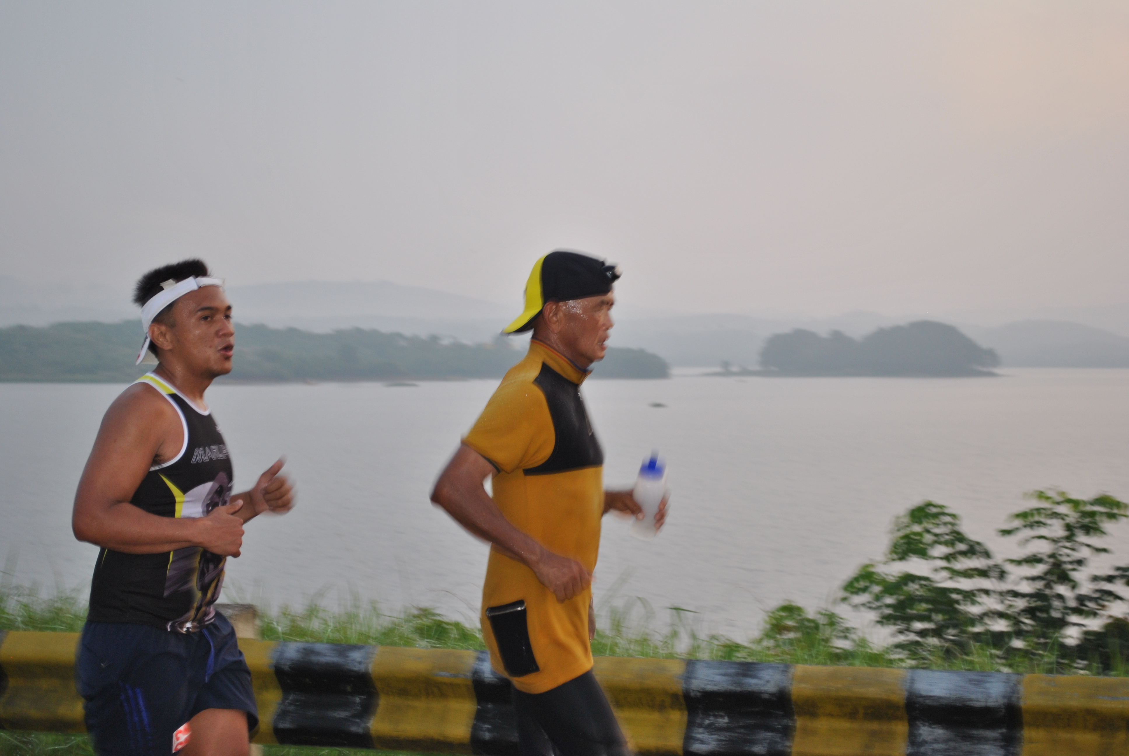 After a short program before the race where the group requested me to have an opening remarks and race briefing by Joseph Pineda aka OK OK Otek, the race started at 4:30 AM at the Municipal Plaza of Pagsanjan. I positioned myself at the back of the pack trying to maintain a slow pace for the first 3 kilometers. Meljohn Tezon, an ultra runner, paced with me but we were silent and did not talk to one another. We were exchanging the sounds of our breaths as we overtook runners along the way. It was a non-stop run/jog except when I would approach my support vehicle to replace my empty water bottle for a new one. At Km #28, Meljohn “surrendered” to my pace and I was running alone trying to catch other runners ahead of me.