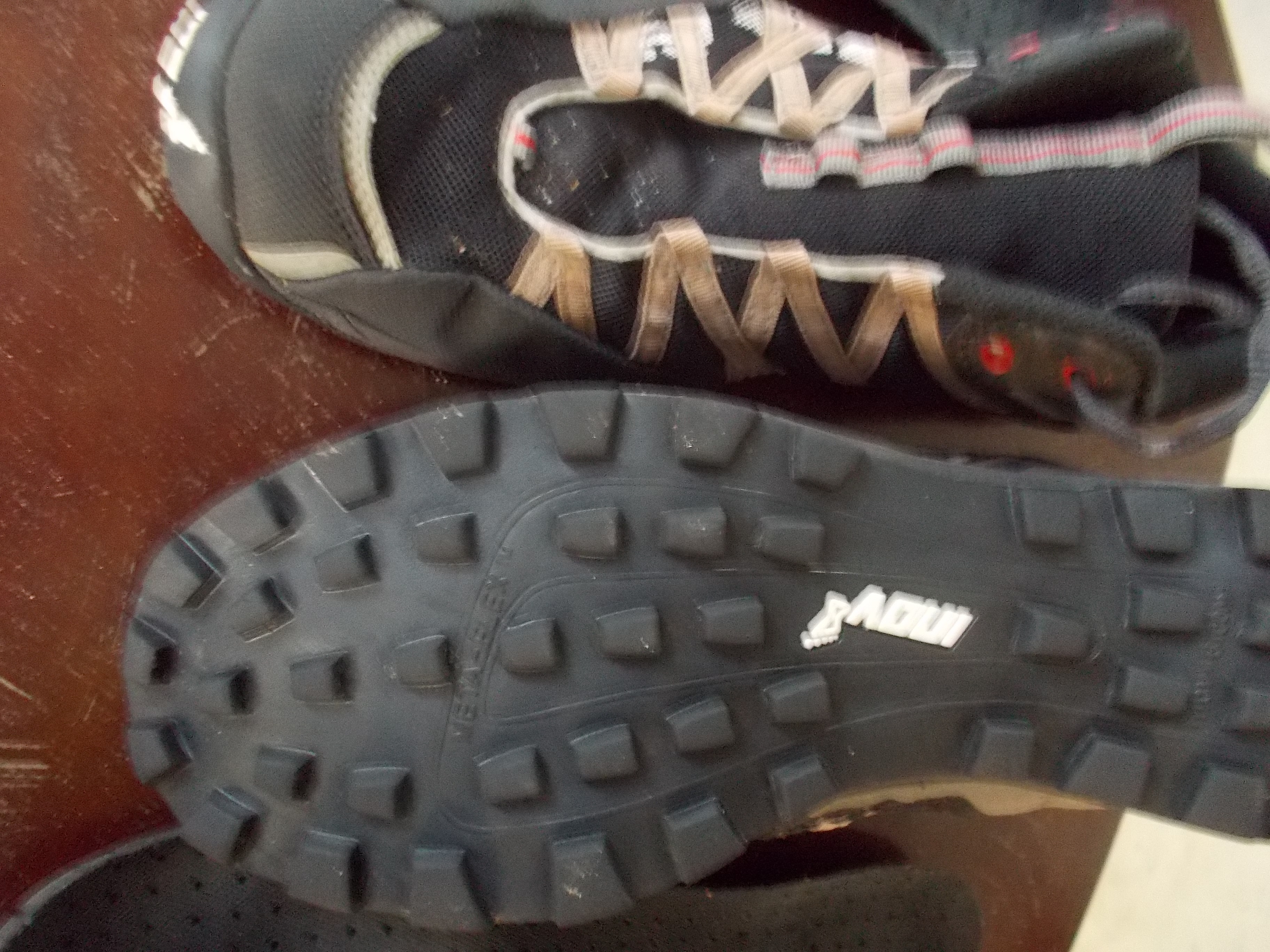 The shoe is very light, for a weight of 7.2 ounces in size 9.5 inches, and considered as “minimalist” trail running shoes. Even if it is soaked with my sweat or wet due to river/stream crossings, the shoes is still very light. The water that would enter the shoes could be easily extracted or dried up due to the porous nylon upper mesh. Due to its lightness, I would usually use it for my speed interval workouts at the oval track and tempo runs over paved roads.