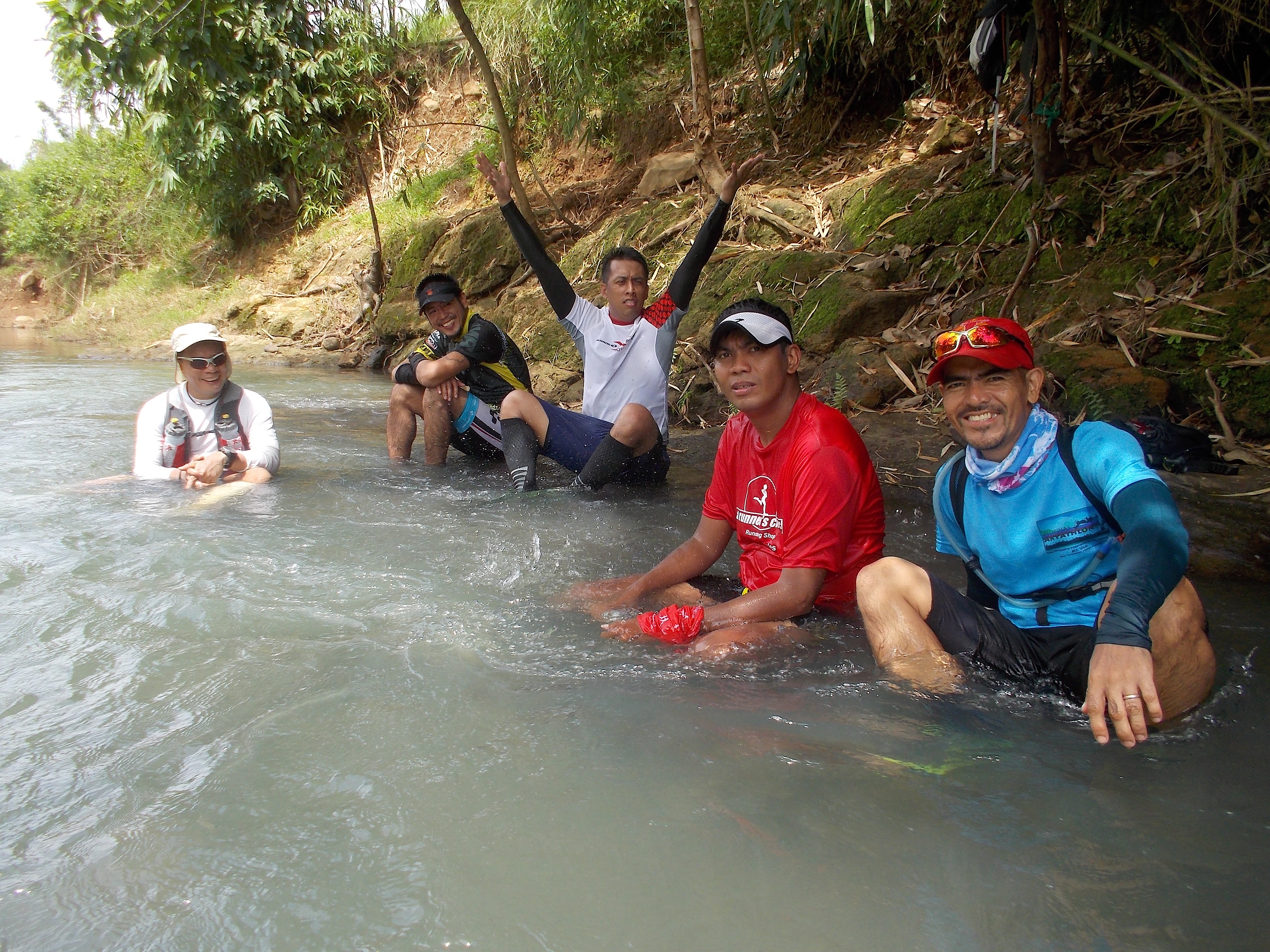 From the 1st antenna, everything will be relatively downhill and the distance to the first river is 6 kilometers. Reaching the first river is a relief for everybody. We would check our watches and we could not believe that we spent 6 1/2 hours along the course. We thought that we just spent 3-4 hours of having fun in the mountains! It is in this river that we start cleaning our shoes from the mud; cleaning our feet and legs; and simply soaking our tired legs with cold and refreshing flowing water while waiting for the last runner and “sweeper” to arrive.