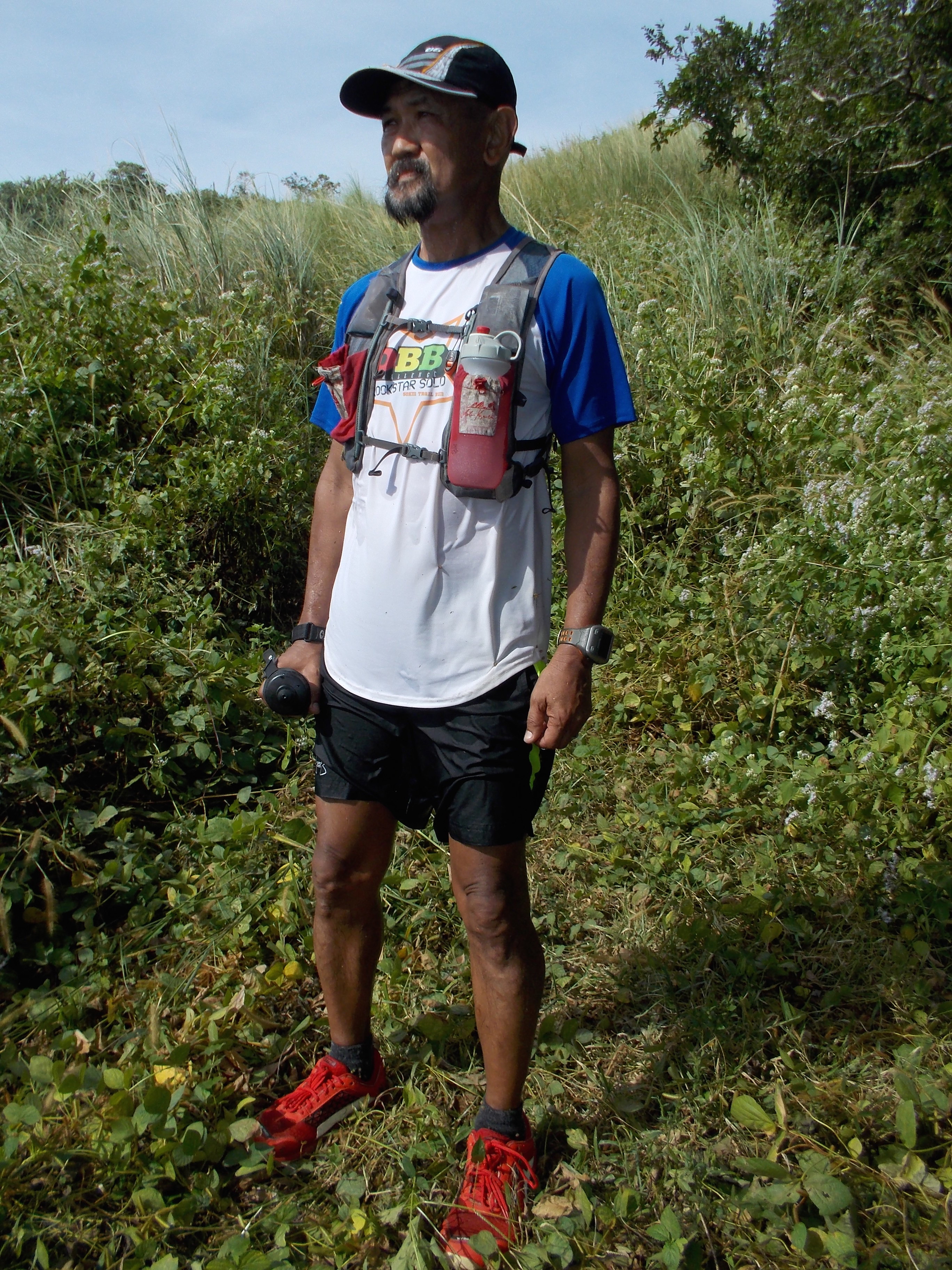 5. Having Fun——With the lack of mileage, sickness/diarrhea , condition of my knees, gout attack, and of course, my age, I tried to condition my mind to have a better performance on this race. Such positive thinking pushed me to endure everything and reminded me about my race strategy to focus more on my nutrition and that I would be healthy & injury-free to finish the race. This reminded me of the practice or tip of which I adopted from my Coach——placing one piece of GU Gel inside my cycling gloves/one GU Gel in each glove! This practice would remind me that I need to take a Gel every time I would swing my arms while running. Once I use one Gel, I would replace it with another one from my Belt Pouch and place the litter in one of my shoulder pockets of my hydration pack. I was also having fun when I outrun the younger runners and sometimes would scare them when they see me that I am nearing them or about to overtake them. Counting my strides when fatigue and heat of the sun would be very hard to the body gave me more fun as I gained some distance getting nearer to each of the Aid Stations.