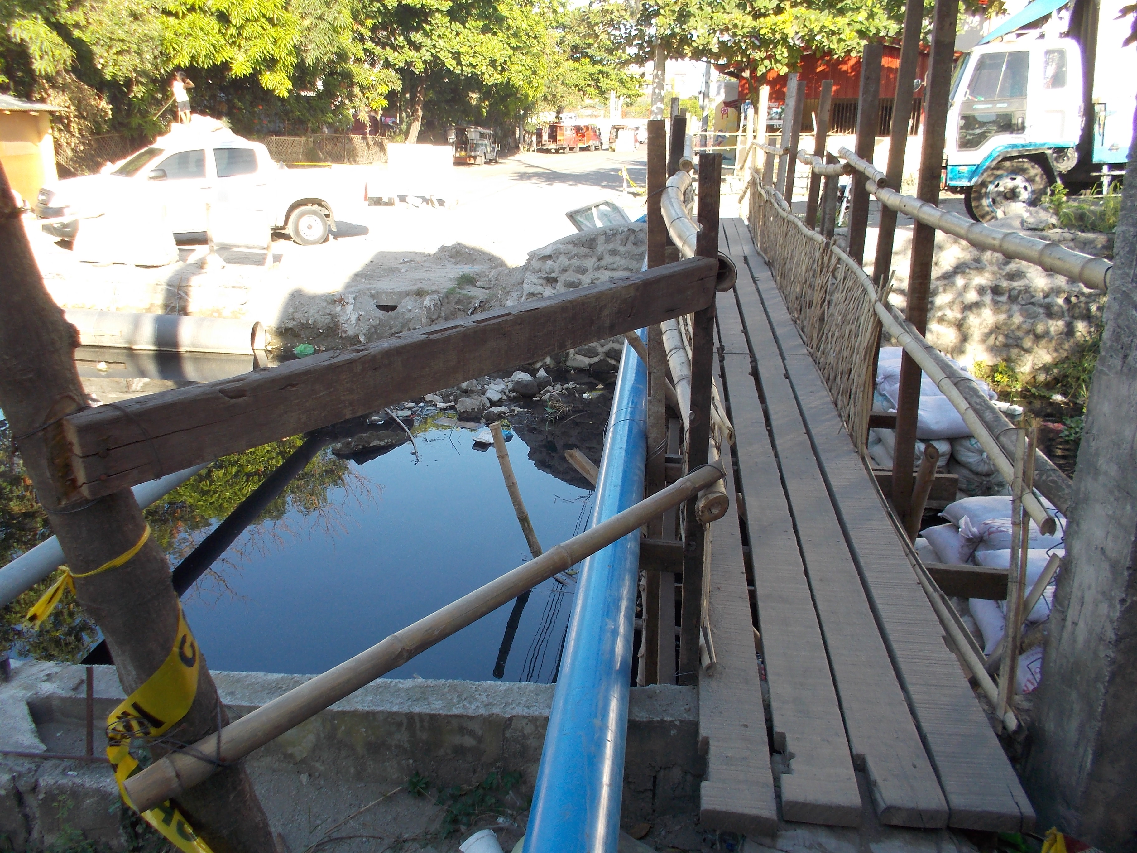 The runners can proceed to the construction area and they can cross the bridge by running or walking along a pedestrian bridge located at the right side of the construction site. It is shown on the picture below. However, the Support Vehicle are advised not to push through towards the construction site as the detour is located on an intersection before the bridge. One has to turn left and follow the road that goes back to the San Fernando-Olongapo Highway. On the first intersection along the said Highway, turn right and follow the road that goes to Guagua, Pampanga.