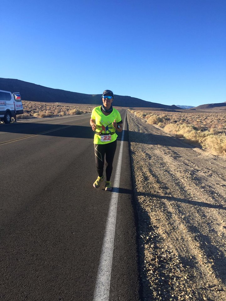 “I did not know why I tripped and fell down on the pavement on the downhill run from Townes Pass to Panamint Springs for two times that my Support Crew had to immediately treat my wounds on my hands and legs. I owe a lot from the support, care, and pacing provided by my Support Crew headed by Benjamin Gaetos”, she said.