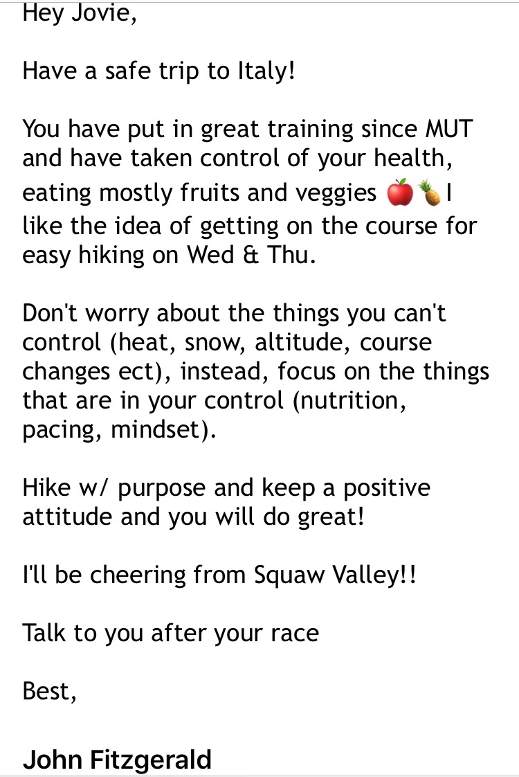 My frustration in MIUT last April gave me a lot of lesson learned and I was able to adjust things during my training. My early arrival in Cortina gave me the time to adjust with the weather and the altitude. However, I should have visited Tri Cime and other higher elevations of the course by Bus but with my lack of knowledge of the area, I was limited in trying to find the first and last few kilometers of the course. My CTS Coach John Fitzgerald sent me his last guidance with the gist/bottomline of focusing on the things that I could control during the race (nutrition, pacing, and mindset) with hiking with purpose and positive attitude. I learned a lot of variations on how to use the trekking poles during my training leading to this race. I really wanted to hike the uphills more efficiently with the trekking poles. I had more “push-ups” repetitions during my training days in order to make my shoulders stronger than what I had during MIUT.