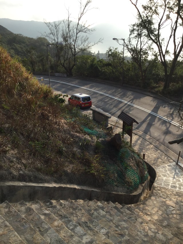 Using a Taxi (waiting for us), it took us from the transition area in Wilson Trail to the Shek O Road Bus Terminal for about 30 minutes. We let Thomas took some drinks and food and let him take a nap on the move inside the Taxi. At the Shek O Road Bus Station, Thomas ate rice and Pork Sinigang and refilled his pack with water and food. Initially, we were lost and confused in looking where the trailhead was and asked a lot of locals in the area. After looking and reading at HK4TUC RD’s Guidelines and Notes, I realized that the Shek O Road sign is the start of the Hongkong Trail up to the Old Wave Bay (going back to where we came from while riding in a Taxi). We advised Thomas to run and hike along the Shek O Road towards the intersection and hit the road going to the Old Wave Bay until he would reach the Hongkong Trail Course Marking/Posts.
