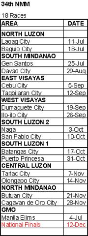 I received the list of schedule from Mr Andrew Neri of MILO/Nestle, Philippines yesterday and I tried to analyze their race schedule for this year. And the following are my observations: