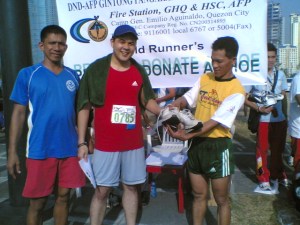 This concept or project of donating my old running but still reliable running shoes and encouraging others runners to donate their old shoes was born out from my observations of seeing young and senior runners participating in weekend road races, most especially in the 2008 Pasig River International Marathon last February 2008, who were seen with tattered and worn-out running shoes, walking and limping on the side of the road. So, I decided to post the pictures of my old running shoes to let the other runners know if they are in need of my old shoes or share the information to other runners and maybe, ultimately, make my offer reach to the needy ones. The comments of The Bull Runner, Banana Running, Quick Silver Runner, Mark, Cecil/Miraclecello, Benov, Datc, and others from that post inspired me to push through with this project through the help of my Officers & Staff of the DND-AFP Gintong Pangarap Running Club, Inc. And I am glad that this project was later endorsed by these bloggers in their respective posts.